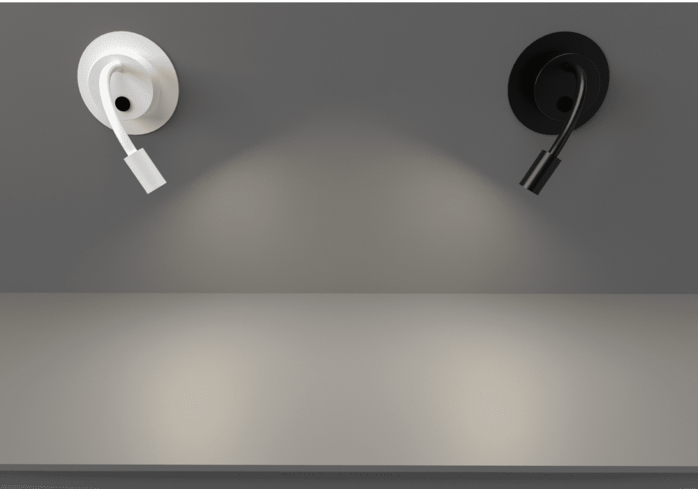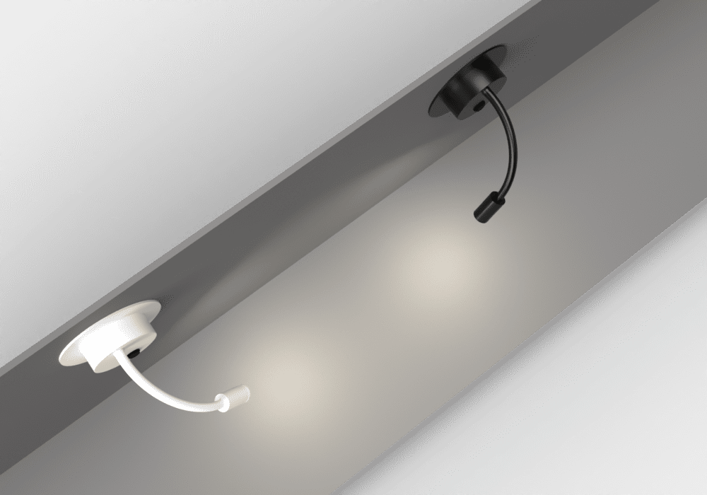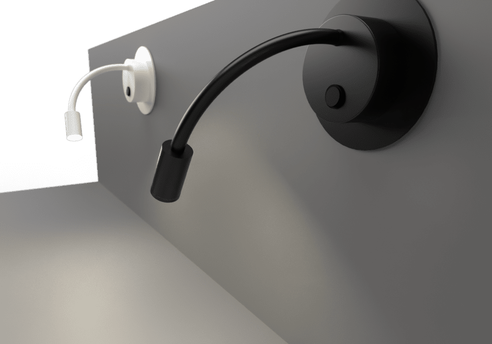 3W COB LED cylindrical bedside adjustable fitting, ideal for room hotel installation. Available in a black or white finish. IP20. D65738A