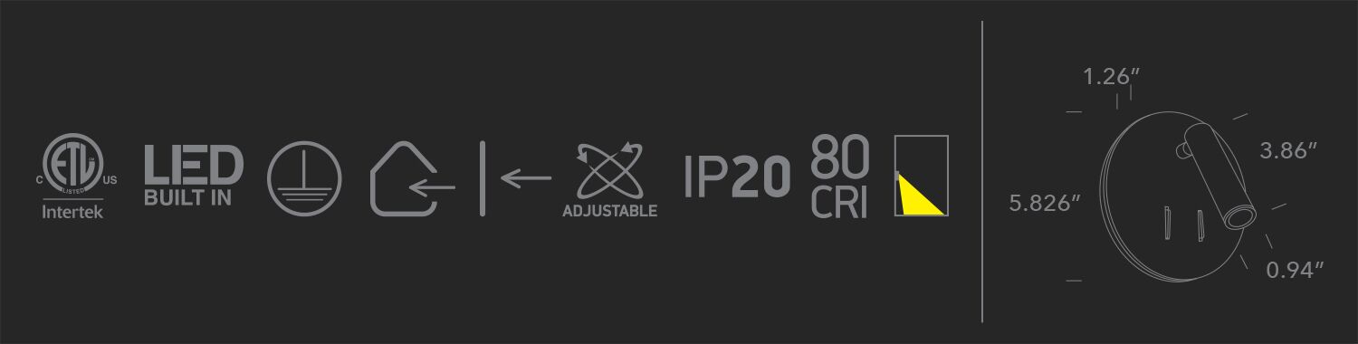 Hospitality-rated, low wattage, backlit bedside reading light. Multi-adjustable, 80 CRI, IP20.