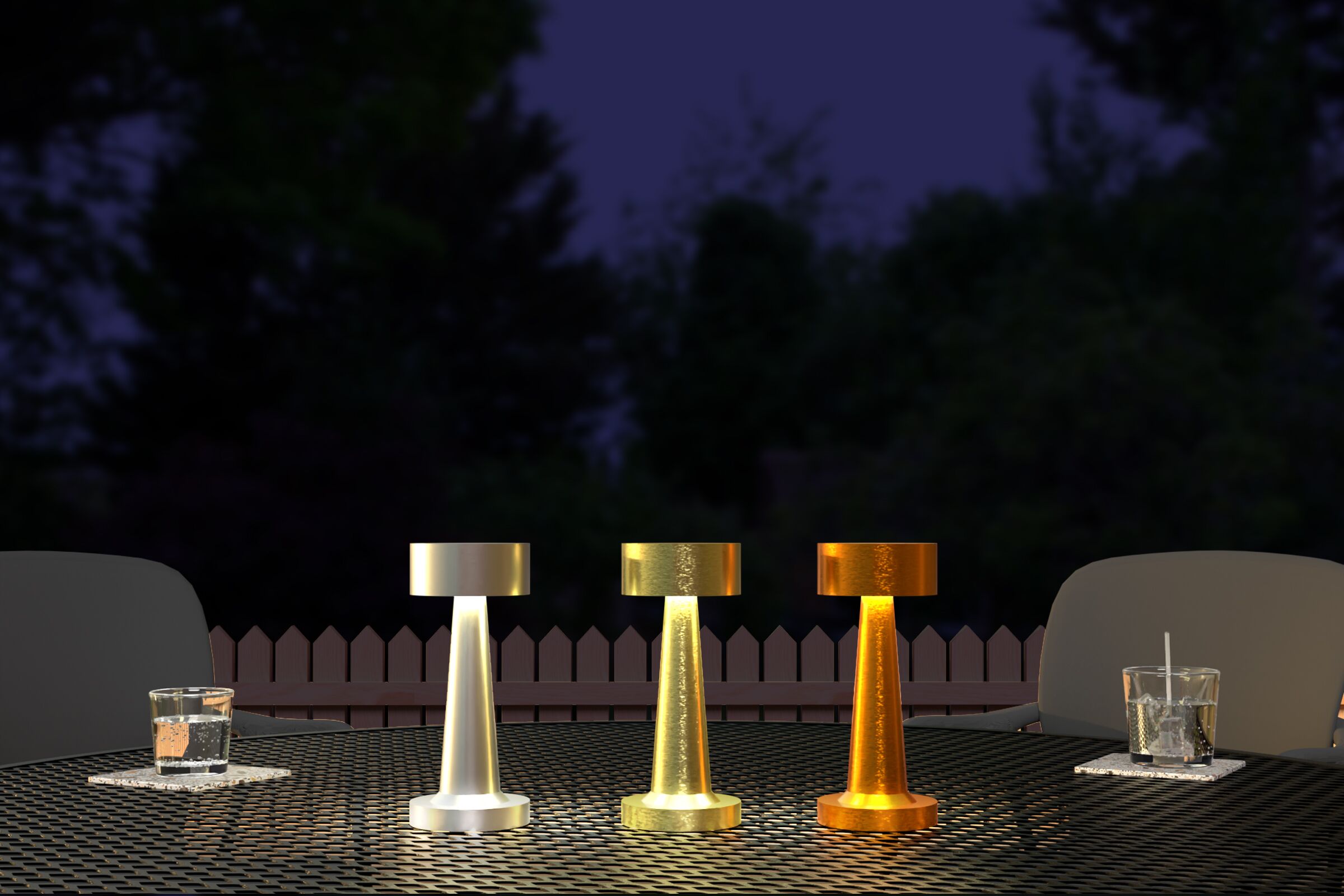 Rechargeable 3-step dimmable table lamp suitable for indoor/outdoor use.