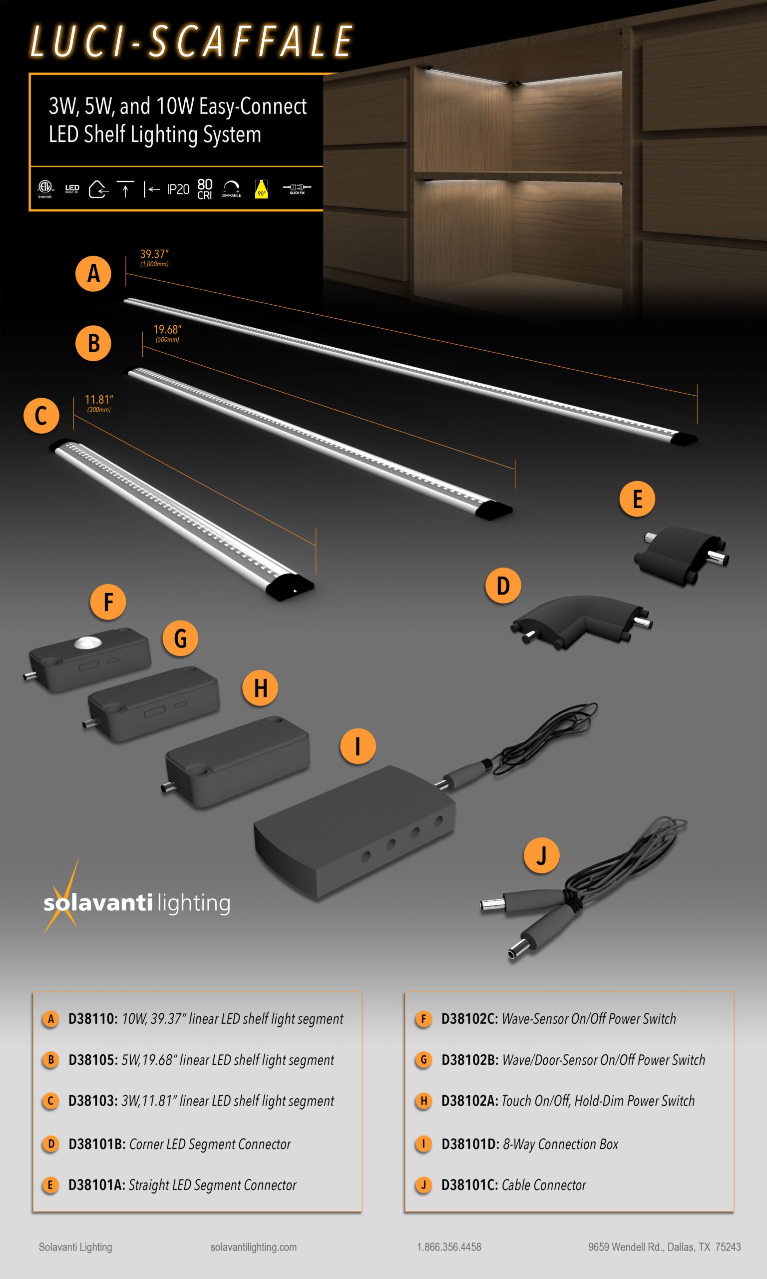 Easy-connect 3W, 5W, and 10W LED Shelf-Lighting System.