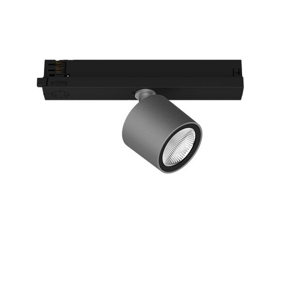 Track-Mounted Adjustable Spot. Rotates 355º and pivots 90º. Available in multiple beam angles and lumen outputs, 3000K or 4000K color temperature, and either a black or white finish.