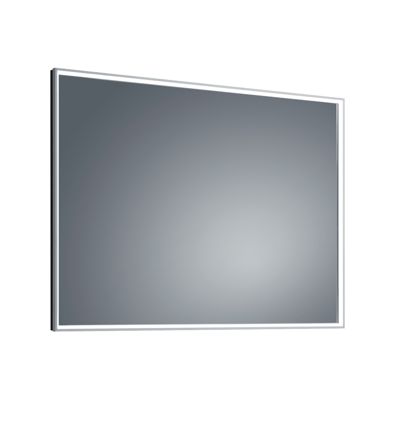 Horizontal Illuminated trim rectangular mirror for a subtle warm LED light.