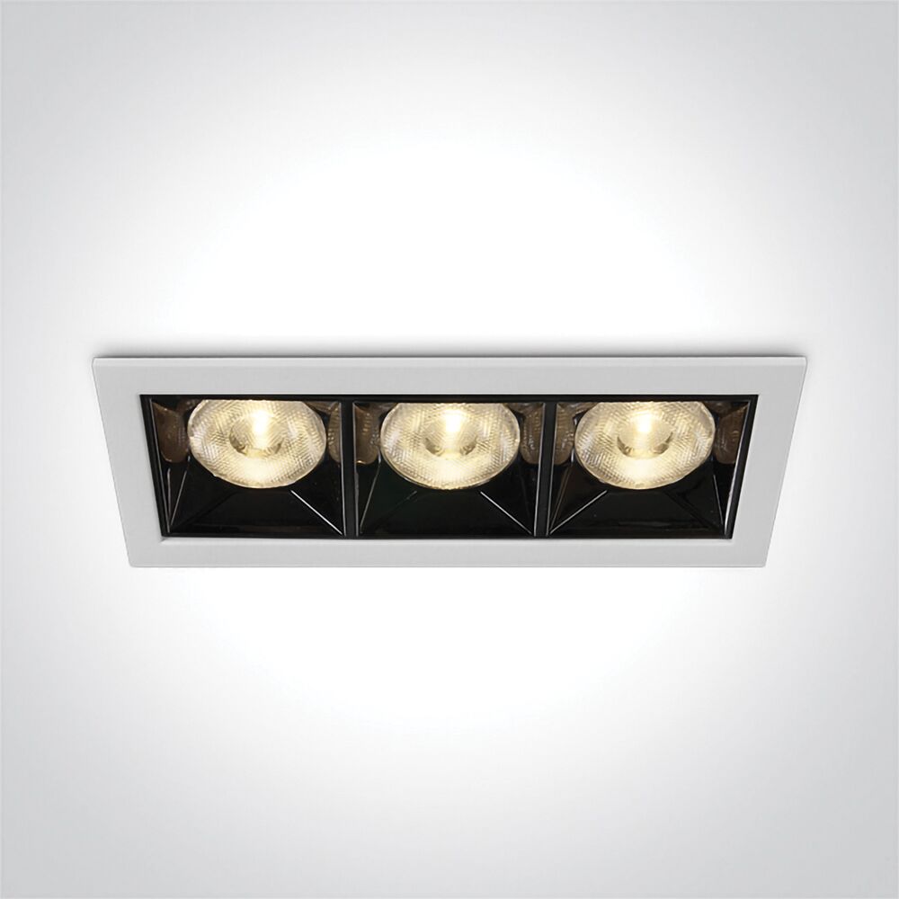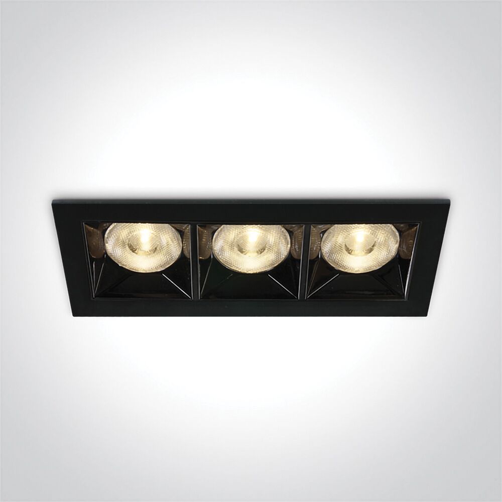 From our SENECA recessed spot family, this model has three spots, powered by 12W. The SENECA12 delivers 960lm at 3000K, with a 90 CRI, in a 38º beam. This item is available in either a black or a white finish. Both options have a sleek dark chrome reflector.
