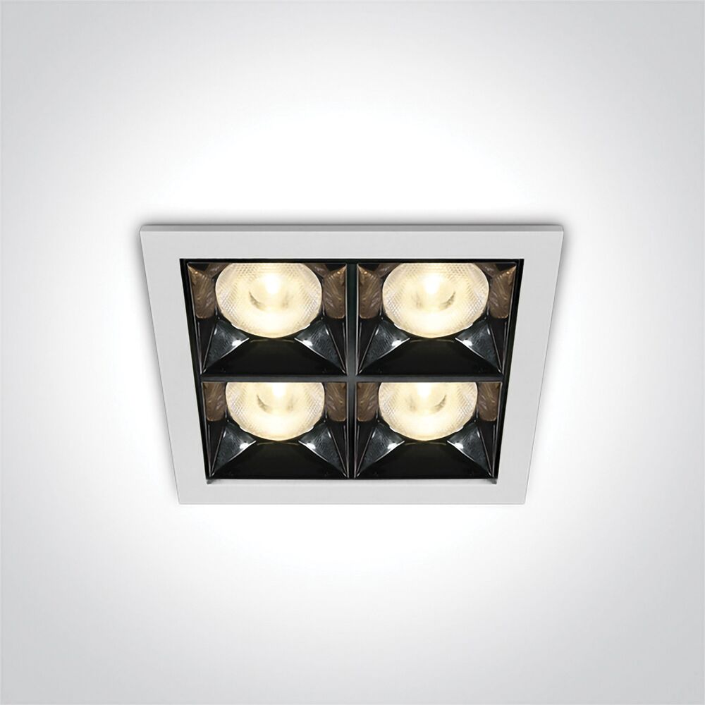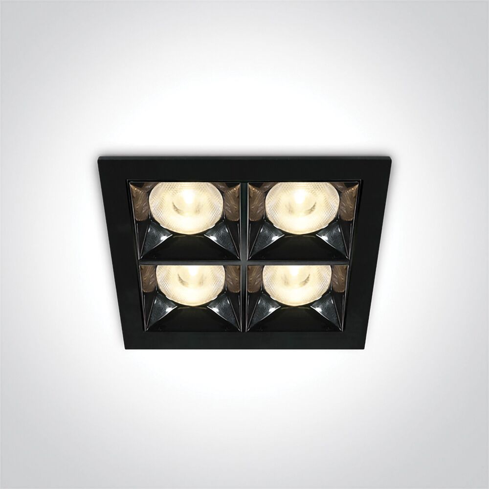 From our SENECA recessed spot family, this is a quad model having four spots, powered by 16W. The SENECA16 delivers 1280lm at 3000K, with a 90 CRI, in a 38º beam. This item is available in either a black or a white finish. Both options have a sleek dark chrome reflector.