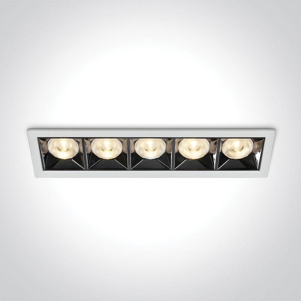 From our SENECA recessed spot family, this model has five spots, powered by 20W. The SENECA20 delivers 1600lm at 3000K, with a 90 CRI, in a 38º beam. This item is available in either a black or a white finish. Both options have a sleek dark chrome reflector.