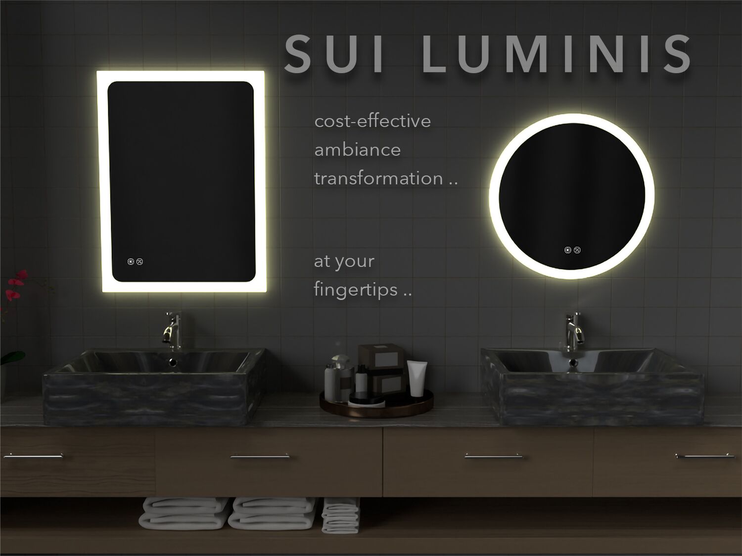 Sui Luminis -perimeter LED mirrors. Cost-effective ambiance transformation, at your fingertips.
