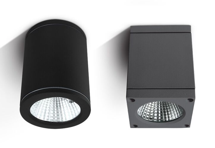 Ceiling surface-mounted lights. Because these fixtures are rated IP54, they’re suitable for outdoor use. Available in cylindrical and square. Multiple finishes to choose from. Budget-friendly, top quality, and quick-shipping.
